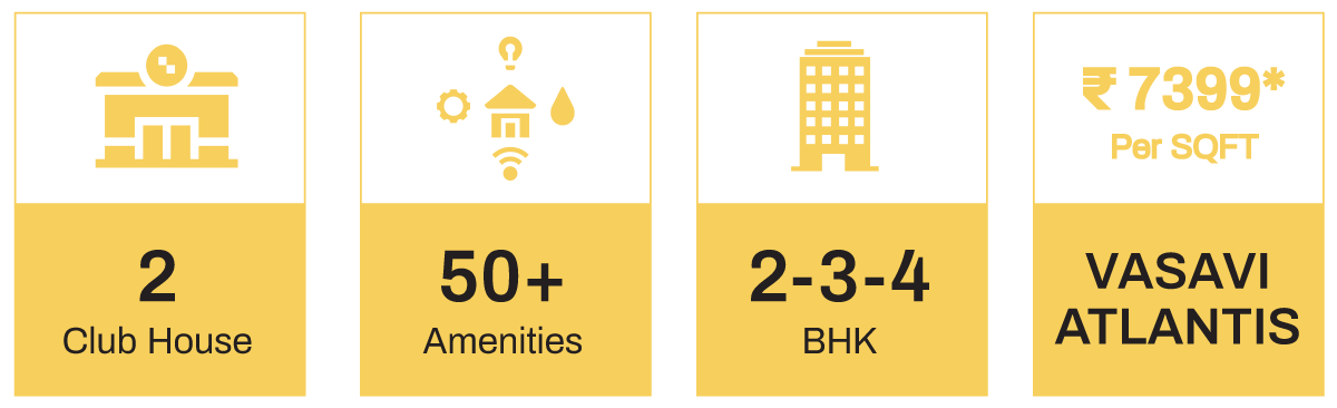Conceived and created by the experienced Vasavi Group with an impeccable 27-year legacy around the core tenet of ‘Happy Living’, Vasavi Atlantis has been designed as an ‘Investment in Happiness’.